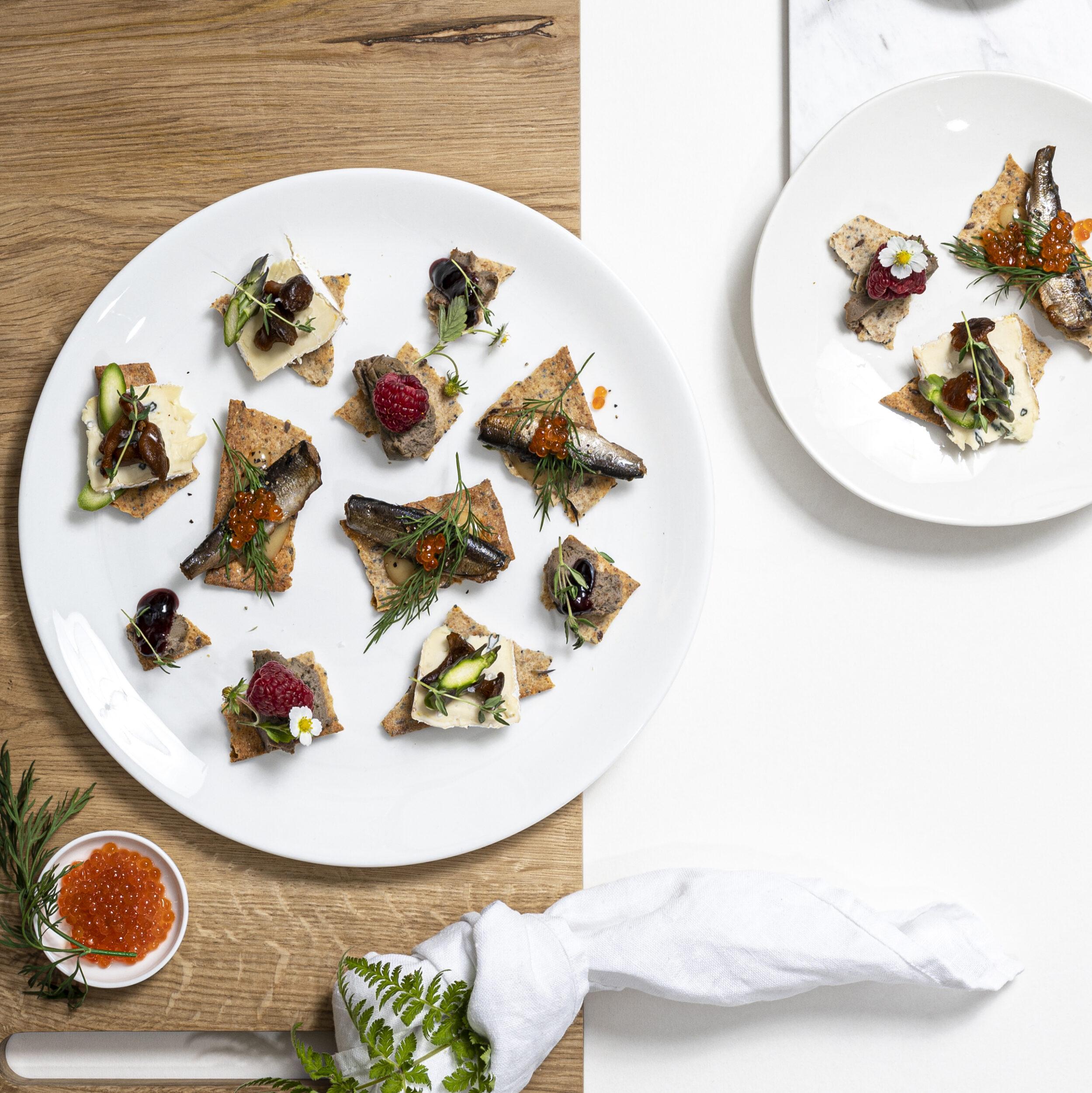 Lahjapaketissa: Iivarin savumuikut, vaalea sinappikastike, perinteinen näkkileipä, hanhenmaksatryffelimousse ja omenacalvadoshyytelö.